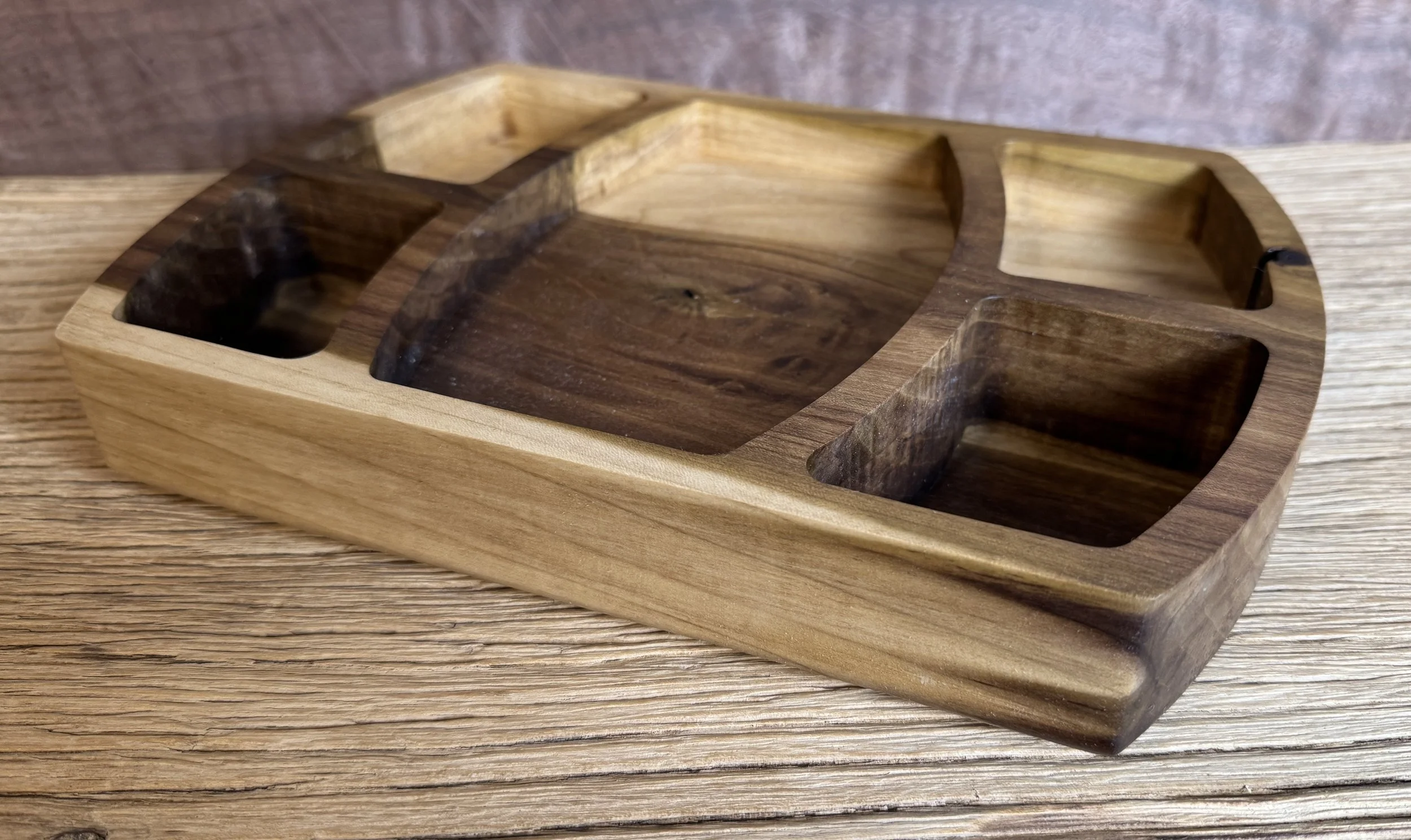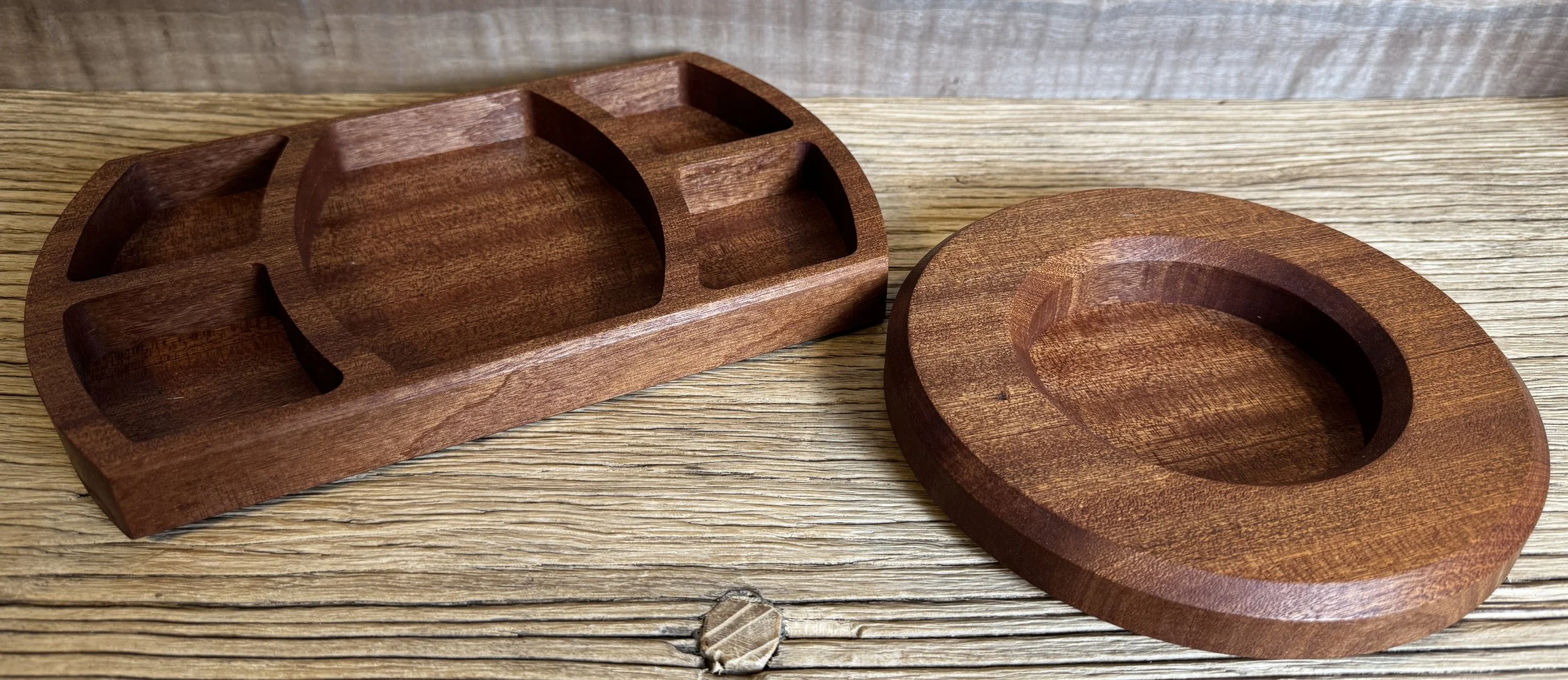 Jewellery trays, desk tidy’s, key bowls, use them for anything. The ones here are hand made by laminating a variety of timbers - Scotts pine, Poplar, Yew, Ash, Hornbeam, Olive, Mahogany and many more can all feature.