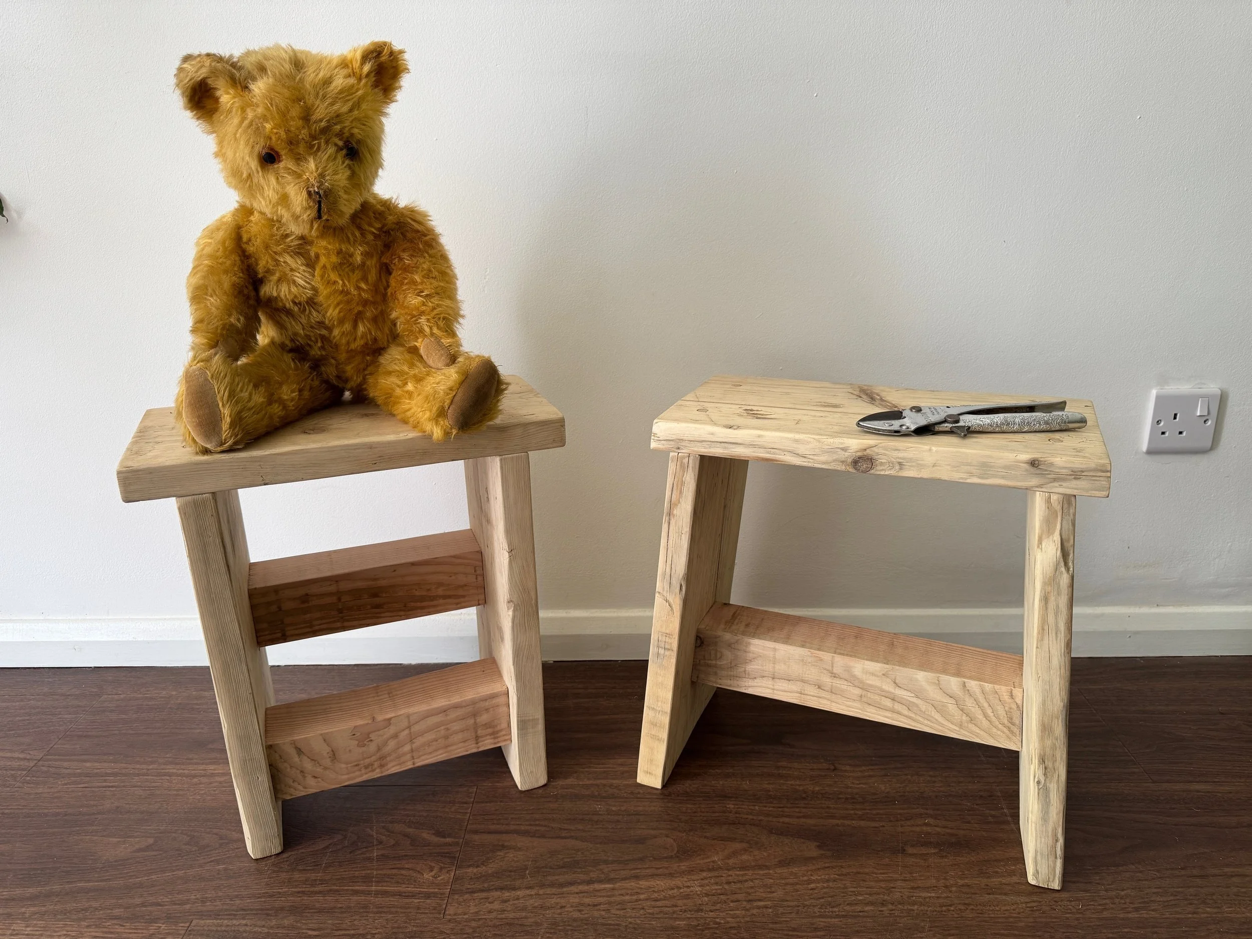 Benches, tables and stools are always popular, and we make them to order to customers specifications. They can be constructed from a wide range of timbers, or combined with glass tops. We try to use recycled timber, usually European Spruce, Oak or Mahogany, but other timbers are always in stock, from Walnut to Olive, so please get in touch here if you have an idea for a creation. We’ll listen to your ideas, and translate that into hand drawn images and dimensions so that we can work with you to develop your idea from paper to reality.