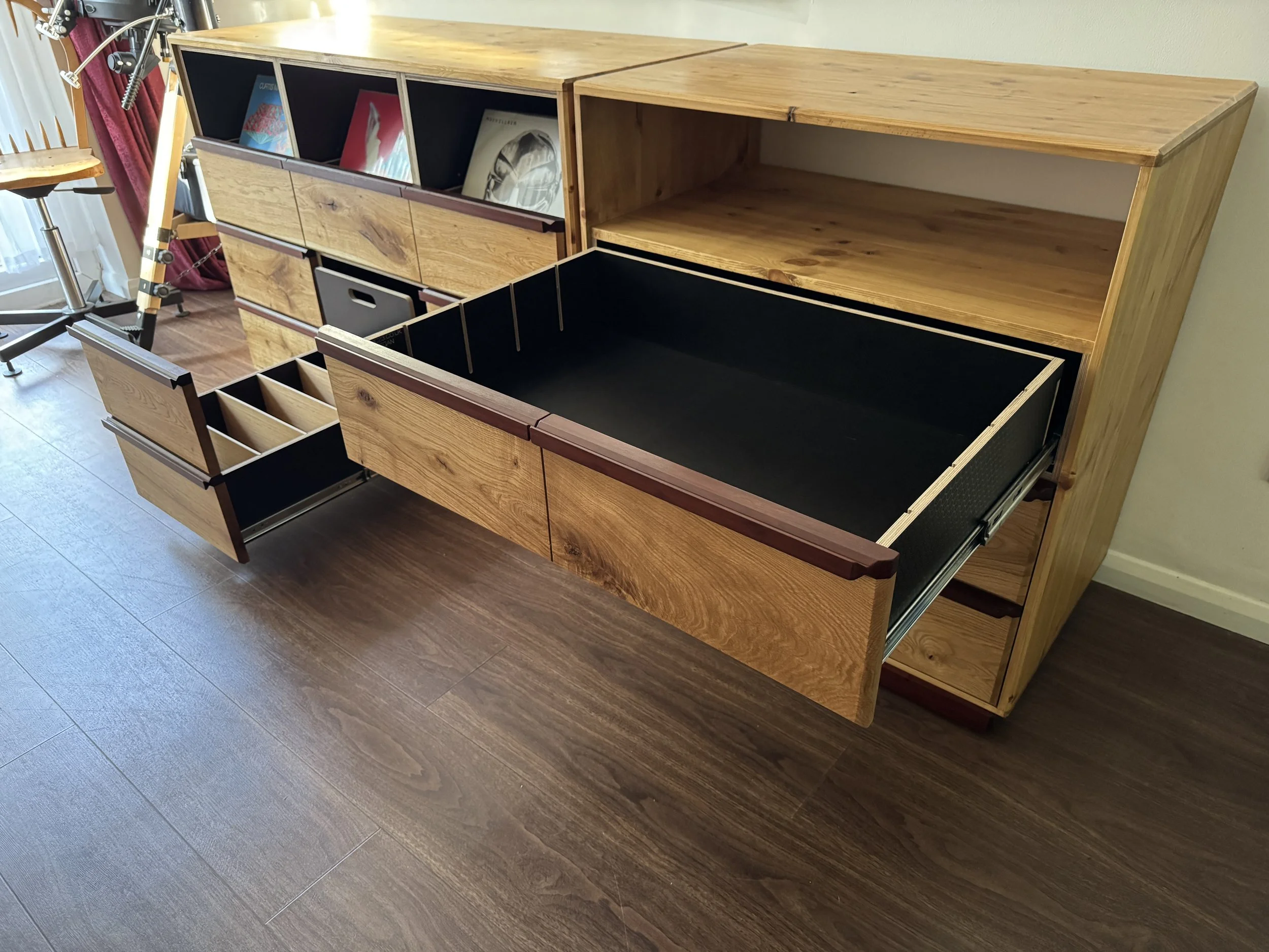 We’ve covered our vinyl record storage drawers elsewhere on the site, but it’s worth saying that these have also been used to create bedroom & office desk drawers and numerous other storage solutions. The advantage here is that our modular drawer system can be utilised in almost any situation with a wide range of uses.